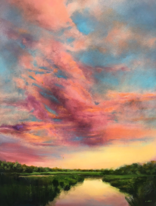 Michelle has a BFA from the University of Delaware. Michelle’s work focuses on the local landscape but her work communicates a universal awe-struck affection for vast unspoiled marshes and wide open skies. Incandescent tones and intense color merge to create signature ethereal scenes verging on abstraction, but still conveying a sense of place and mood.